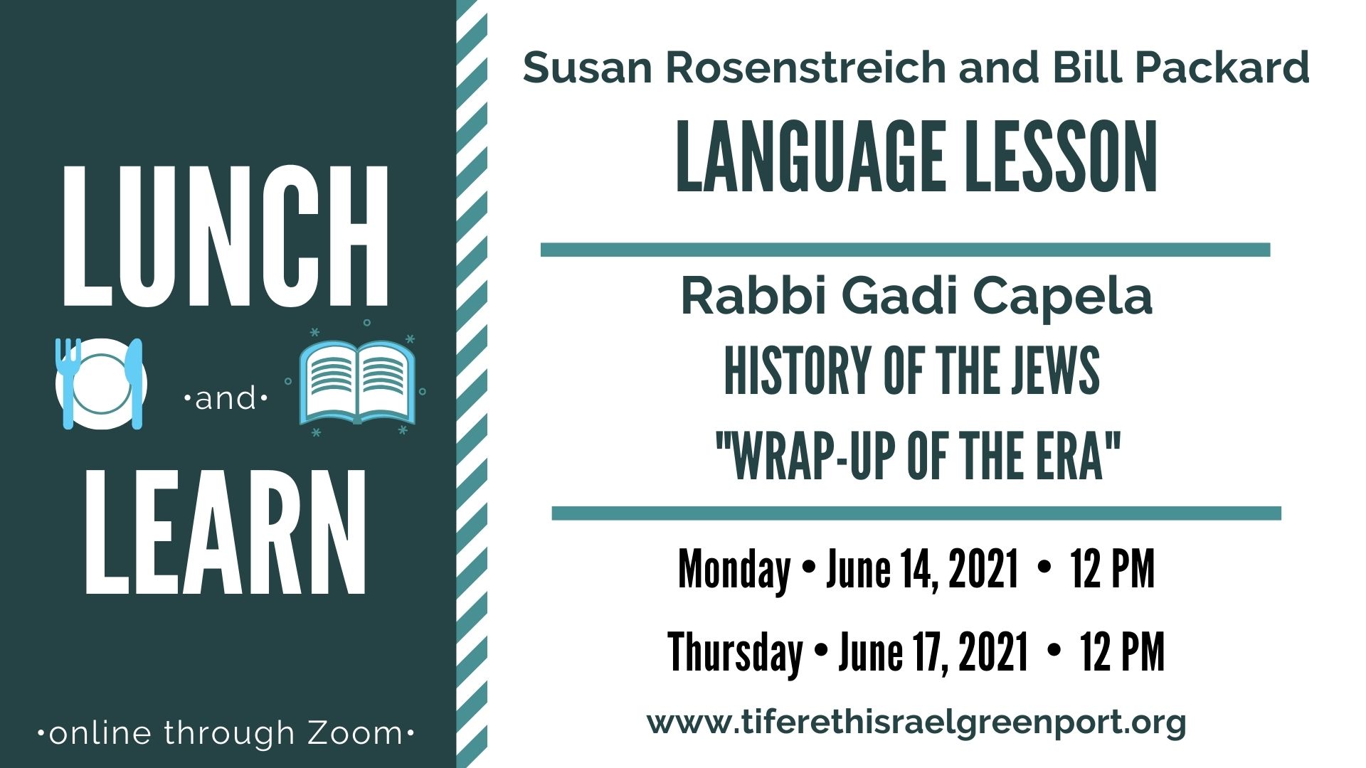 Rabbi Gadi will bring his “History of the Jews” series to a stopping point before the Lunch and Learn summer hiatus. With so much at stake as the Jewish people wander without a homeland, Rabbi Gadi will draw the era to a close and provide a preview of what’s to come. Zoom at noon for a look to the future.