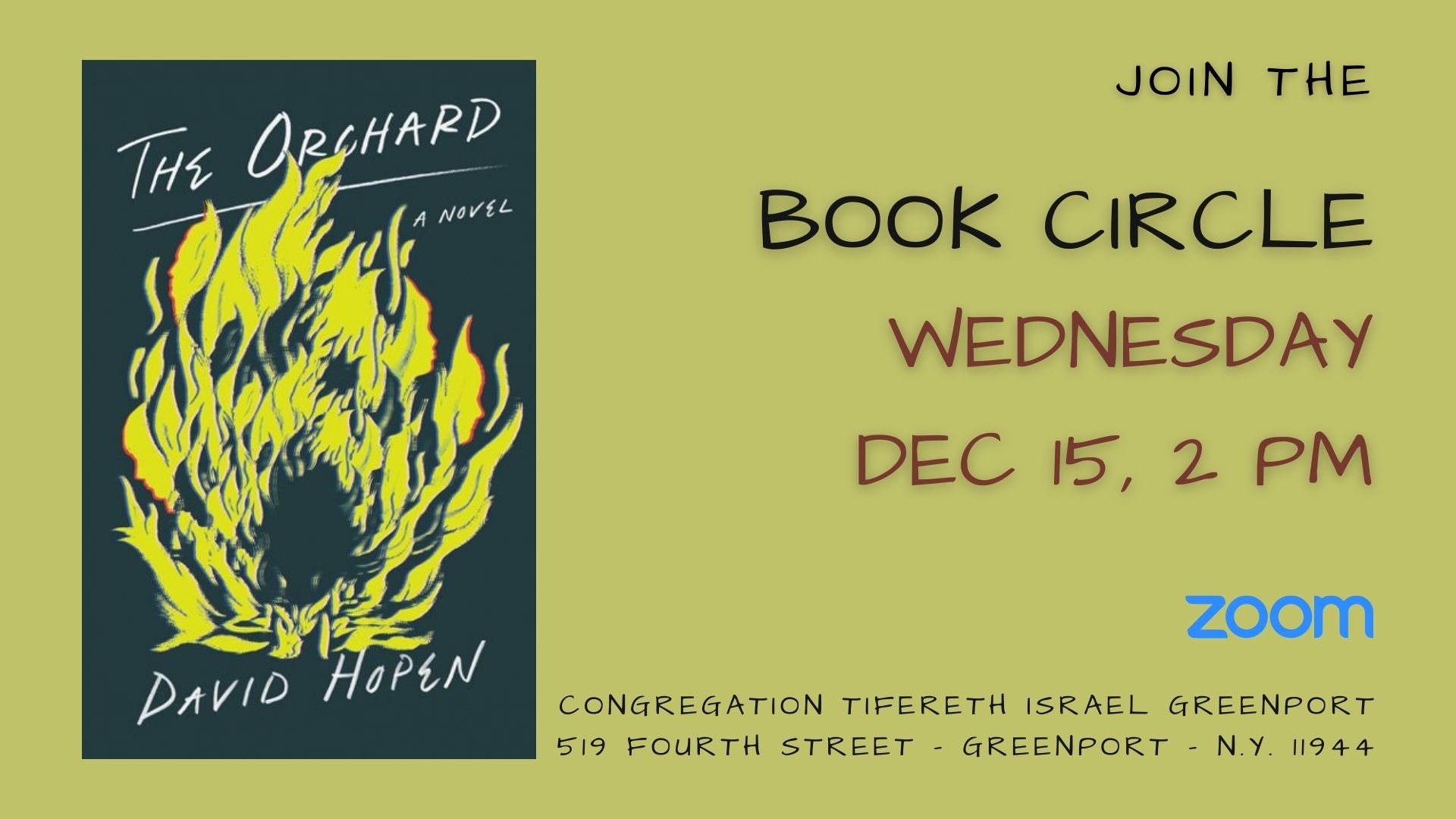 The Book Circle will meet again on Wednesday, Dec. 15, at 2 p.m. on Zoom to discuss David Hopen’s The Orchard: A Novel, a National Jewish Book Award finalist. This selection, a coming-of-age story about a devout Jewish high school student in ultra-Orthodox Brooklyn, traces his trajectory to glitzy Miami and the challenging effects of the secular world on his understanding of himself and his beliefs.