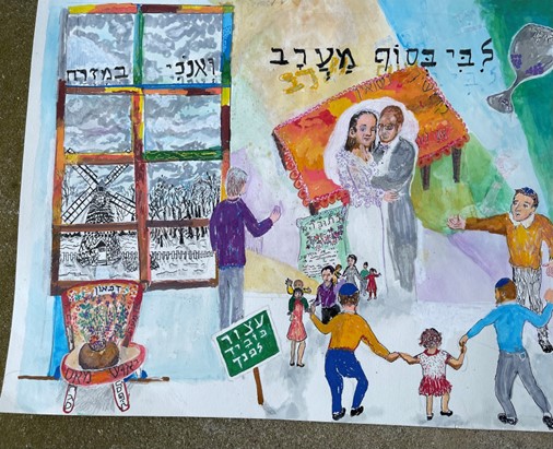“My heart is in the East and I am at the edge of the West” wrote the renowned poet, scholar and physician Yehudah Halevi when his heart was exiled in medieval Spain. “As for me,” said Judaism and Art member Hedvah Campeas-Cohen, commenting on the poem that had inspired her painting, “I was exiled here on the East End when my niece Sarah married her beloved Adam, last April, west of here in New Jersey.