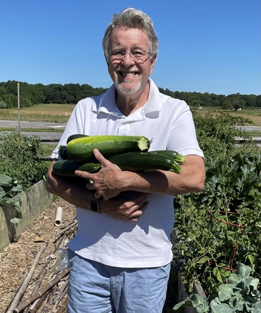 Wow! The Tikkun Olam Initiative sure knows how to grow veggies. Tom Byrne cradles these zucchini beauties, just harvested from the group’s two Common Ground plots. All produce is donated to CAST.