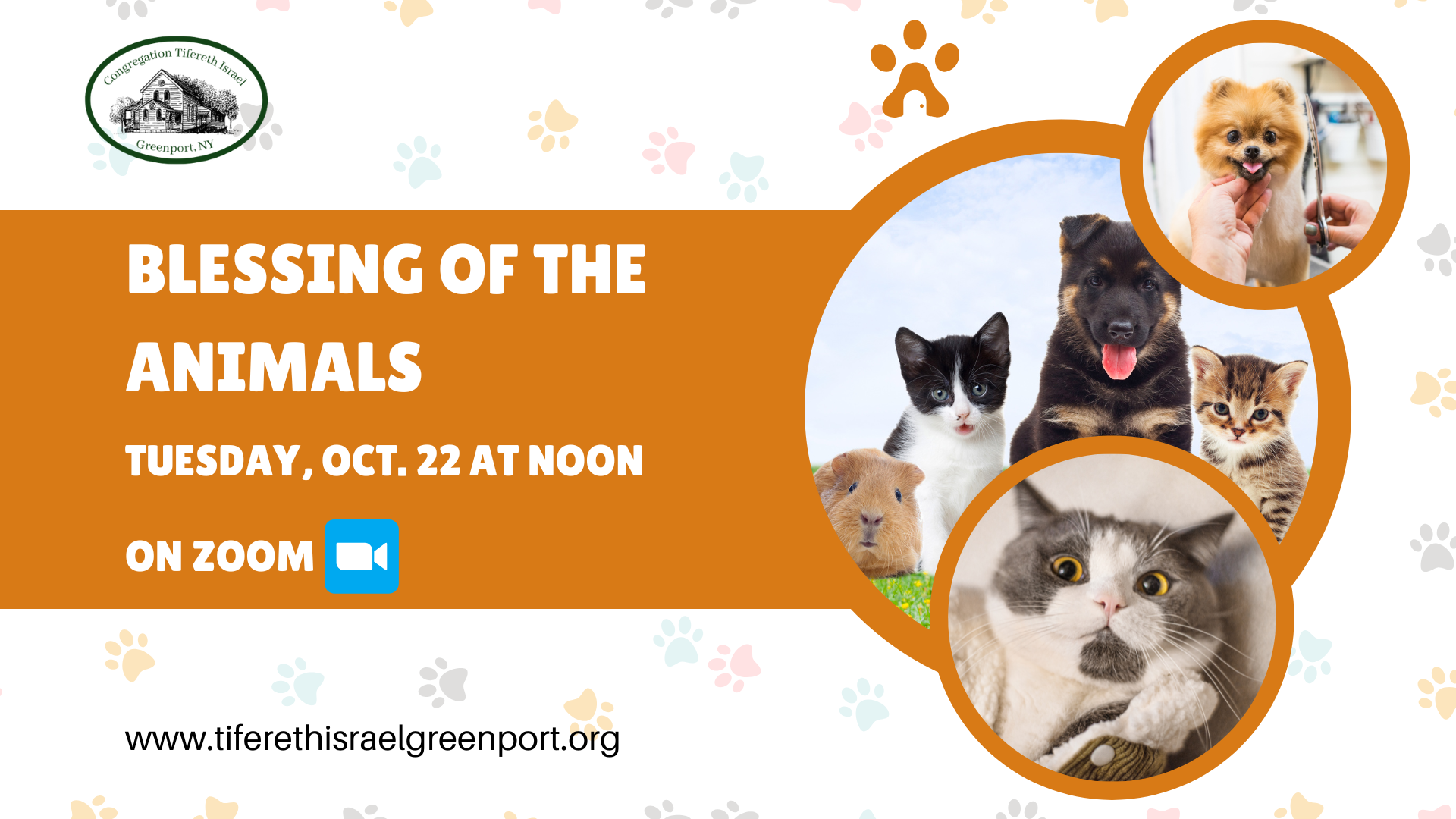 And on Tuesday, this week, Rabbi Gadi will bless them. Not in Andrew Levin Park, as in days gone by — enough of that chaos. Now we invite you to bring your pets on Zoom, where we can admire them, ooh and aah over them, and not need to keep them from running amok.