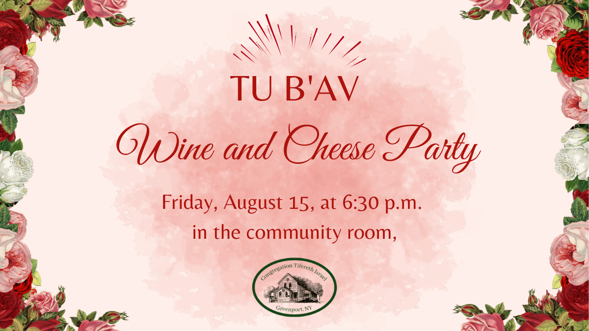 Come to the Tu B’Av wine and cheese party.