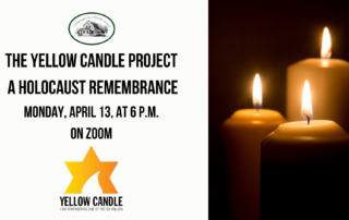In a few days, you will receive your candle in the mail or delivered to your front door. Please join our shul on Zoom, Monday, April 13, at 6 p.m. when we will light our candles together in memory of the six million. The Yom HaShoah Yellow Candle Project encourages us to pause and reflect on the Holocaust — the six million who were lost amid the horrific acts of aggression that vanquished Jewish [...]
