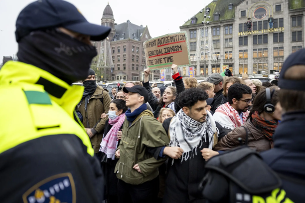 The previous week, Amsterdam authorities declared a state of emergency — during which all protests are banned — after locals attacked Israelis who were in the city for a soccer match between Maccabi Tel Aviv and Ajax, a major Dutch club. At least 10 Israelis reported injuries, and five were hospitalized from the targeted beatings, many of which were recorded and posted to social media by the assailants. The Dutch police arrested 65 people in connection with the attacks.