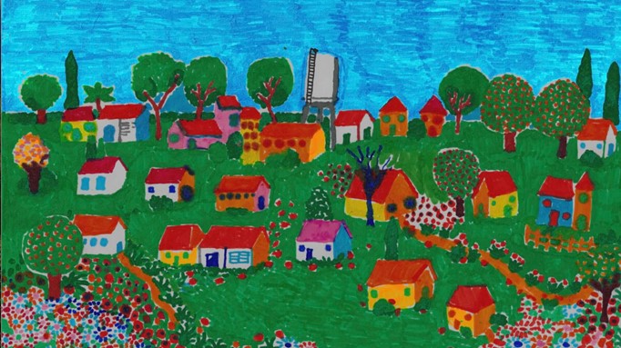 Israeli artist Zeev Engelmayer’s “Daily Postcard” project lays bare his emotional response to the Oct. 7 Hamas terrorist attack. Since then, Engelmayer has drawn more than 300 images — some evoking despair and isolation, longing and grief, yet the vibrant colors and childlike figures spark a measure of joy and beauty. “I decided to center on hope,” he said, “that something beautiful could be born of something so brutal.” His “Pastoral Kibbutz,” pictured, a folk-like illustration shows a happy picture where something horrible could happen, as it did on Oct. 7. Thirty of the illustrations are on display at Westchester Jewish Center’s Koslowe Gallery, Mamaroneck, NY, through Jan. 21.
