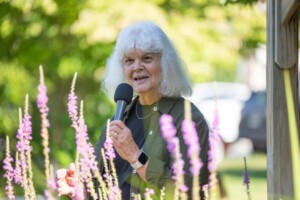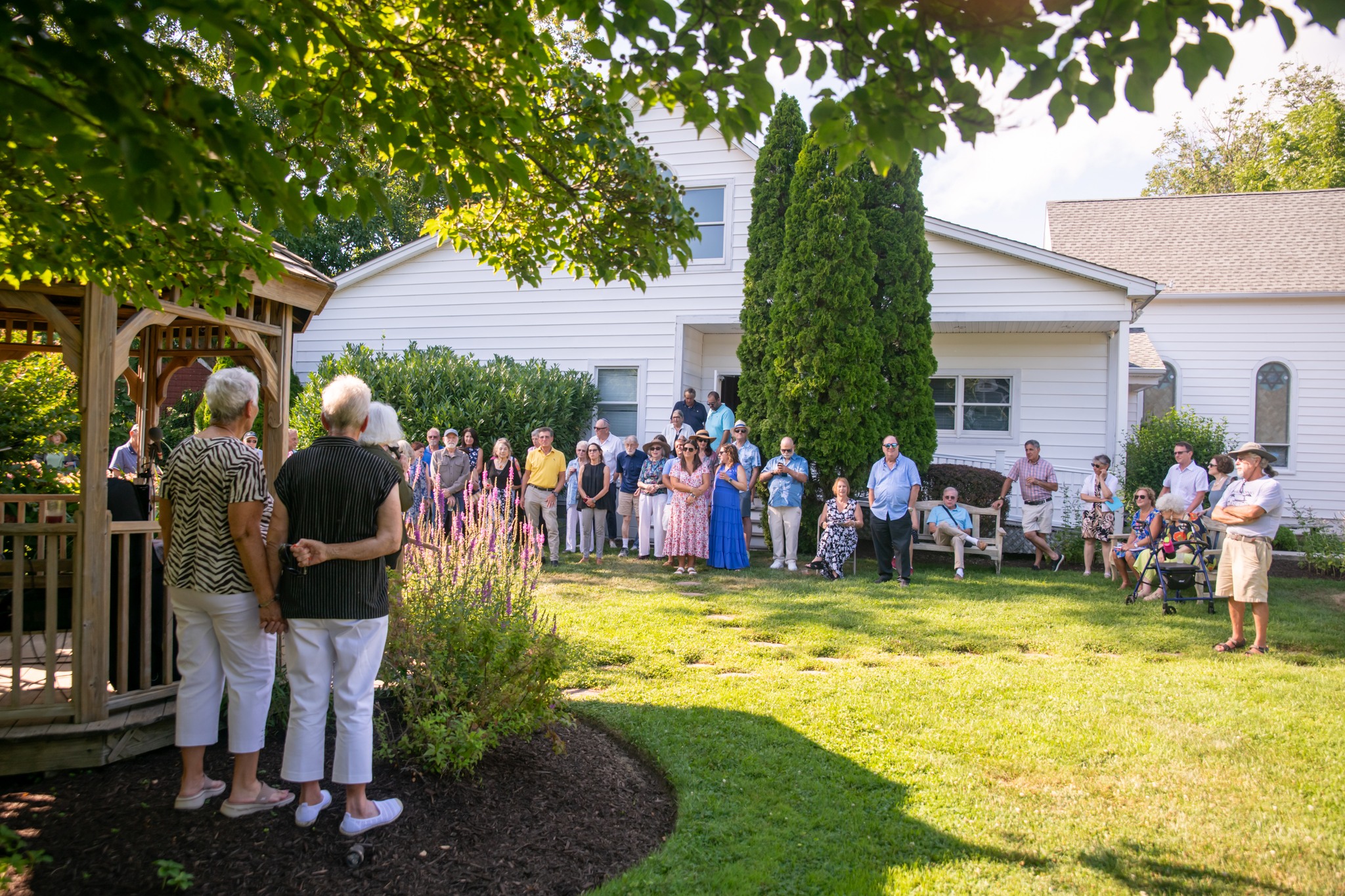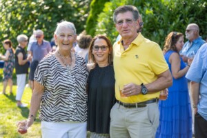 Morning clouds evaporated on July 20, and glorious sunshine filled the sky for the second annual Garden Party held in Andrew Levin Park. Co-chairs Helaine Teperman and Nancy Torchio were the sterling hosts of the event, welcoming shul members, family and friends of the 2025 Journal honorees, Miriam Gabriel and Adrianne Greenberg, and overseeing every element of the splendid event, from food and drink, music by Ron Rothman and company, seating, and the ceremony saluting the honorees.