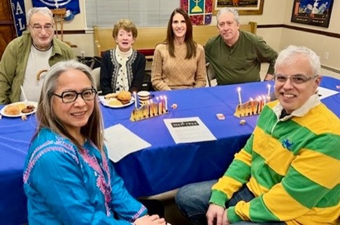 Music by Ron Rothman, Dave Berson and friends, and lots of socializing capped a fun-filled celebration, chaired by Adrianne Greenberg, with assistance from Sara Bloom, Suri Lan-Brown, Francis DuBois, Roberta Garris, Miriam Gabriel, Paul Jesselsohn, Joanna Paulsen, and Madelyn Rothman. In the park, Hanukkah candles and Christmas lights lit up the sky throughout the holiday season.