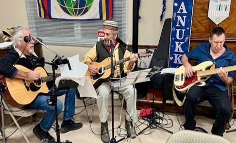 Rabbi Gadi led a standing-room-only gathering of Peconic Landing residents to usher in the first night of Hanukkah on Dec. 25. More than 50 members of the facility’s Jewish population plus other interested residents, and even members of our shul who had heard about the event, turned out to be a part of one of the first Hanukkah events in recent memory to be held at the facility. As a Christmas tree glistened in the background, lending an ecumenical spirit to the ceremony, the gathering in the front lobby recited the three Hebrew blessings, sang traditional Hanukkah songs, and relished the light of flickering candles. The event on Christmas Day, a rare coincidence, was organized by shul member and Peconic Landing resident Judith K. Weiner, who coordinated the publicity, had the dining room provide traditional refreshments, and planned the evening’s program.