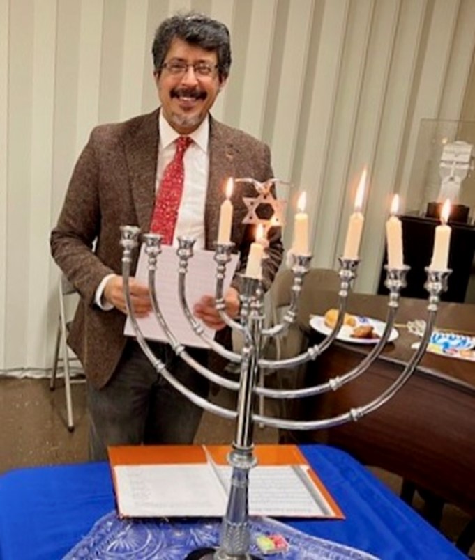 Following the ceremony, all walked two blocks west to the synagogue on Fourth Street for Hanukkah latkes and jelly donuts (foods fried in oil) that remind us of the miracle of the small cruse of oil that burned for eight days.