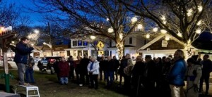 On a clear night in Greenport’s village center, shul members, guests and villagers gathered in Mitchell Park to light the public menorah, sited a few feet from the village Christmas tree as a sign of ecumenism. Rabbi Gadi led the crowd in reciting the blessings before illuminating the menorah on the 5th night of the 8-night observance.