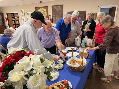 Bagels and lox and all the fixin’s greeted the 20 or so members and guests who joined together after the Shabbat service on August 17 to celebrate the holiday of Tu B’Av, often called the “Jewish Valentine’s Day.